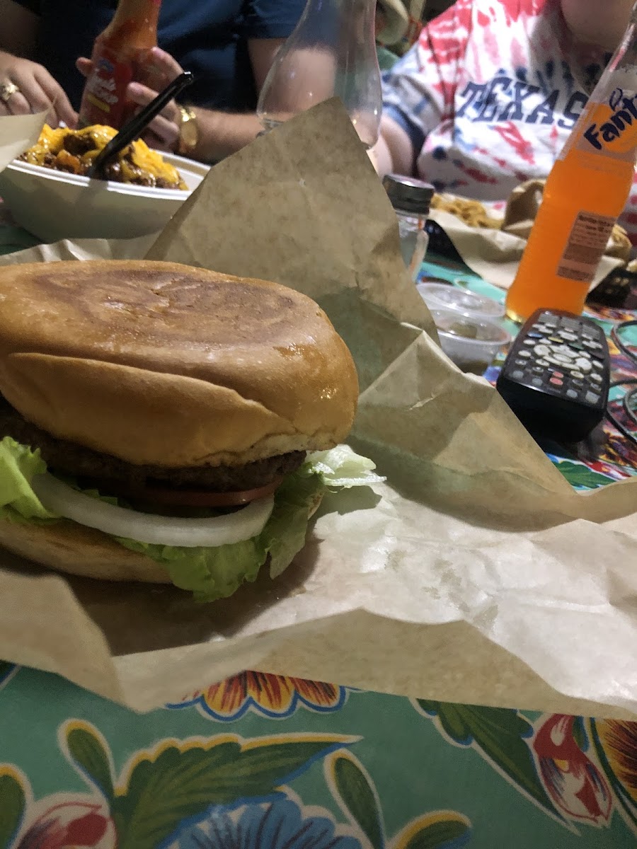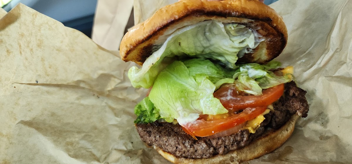 Straight up good place. Burger is excellent with great service. They are very fast there's plenty of places to sit inside there's a huge picnic table outside and I think you could even sit on their front porch. They are very trusting you place your order You sit down with self-serve drinks when it's all done you walk up to the counter tell them what drinks you had and then you pay. Love it