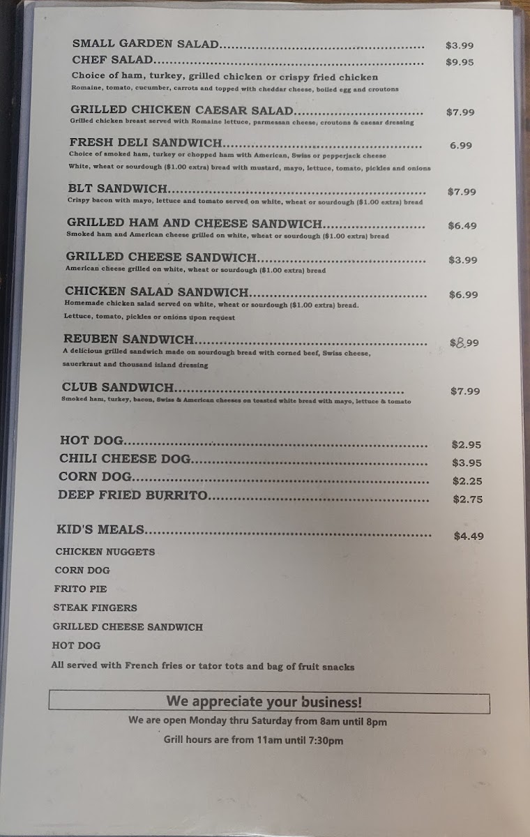 The food pairs naturally with the store’s laid-back, rustic atmosphere—a place where simple, well-prepared meals feel like a quiet moment of familiarity. Whether sitting inside amid vintage charm or enjoying the outdoors at the picnic table, the menu supports a comfortable experience that’s easy to savor at your own pace.